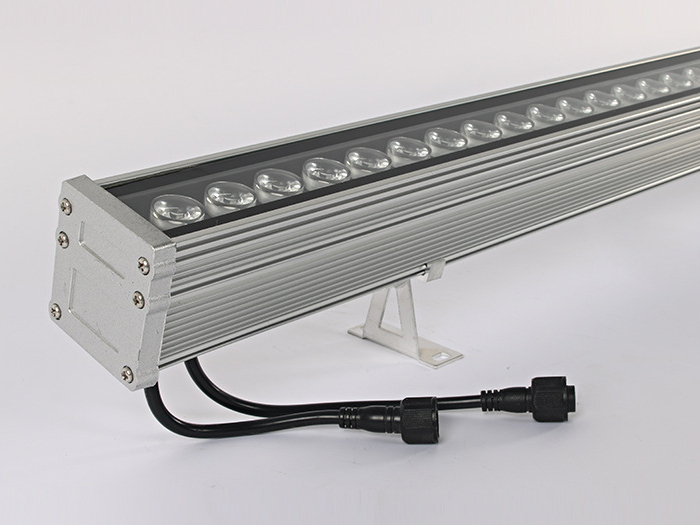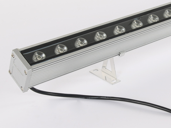 应用较多的LED洗墙灯基本上是选用1W大功率LED管(每个LED管会带有一个由PMMA制成的高光效透镜,其主要功用是二次分配LED管发出的光),呈单线排列(二线或多线排列的我将其归为LED投光灯),大多数LED洗墙灯的LED管都是共用一个散热器,其发光角度一般有窄(20度左右)、中(50度左右)、宽(120度左右)三种,大功率LED洗墙灯(窄角度)的最远的有效投射距离为5-20米,其常用功率大概有9W、12W、18W、24W、36W等几种功率形式,而它们的常用外形尺寸一般为300、500、600、900、1000、1200、1500mm等几种,可以按实际工程应用选择不同的长度和功率密度。