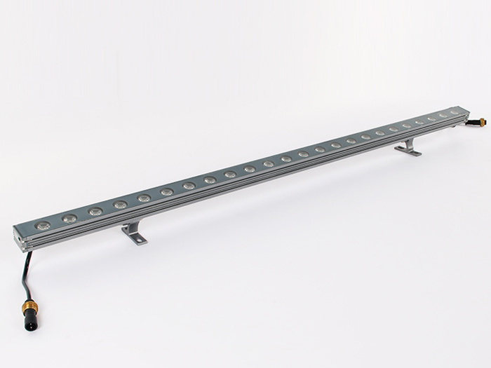 应用较多的LED洗墙灯基本上是选用1W大功率LED管(每个LED管会带有一个由PMMA制成的高光效透镜,其主要功用是二次分配LED管发出的光),呈单线排列(二线或多线排列的我将其归为LED投光灯),大多数LED洗墙灯的LED管都是共用一个散热器,其发光角度一般有窄(20度左右)、中(50度左右)、宽(120度左右)三种,大功率LED洗墙灯(窄角度)的最远的有效投射距离为5-20米,其常用功率大概有9W、12W、18W、24W、36W等几种功率形式,而它们的常用外形尺寸一般为300、500、600、900、1000、1200、1500mm等几种,可以按实际工程应用选择不同的长度和功率密度。