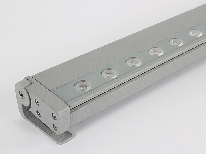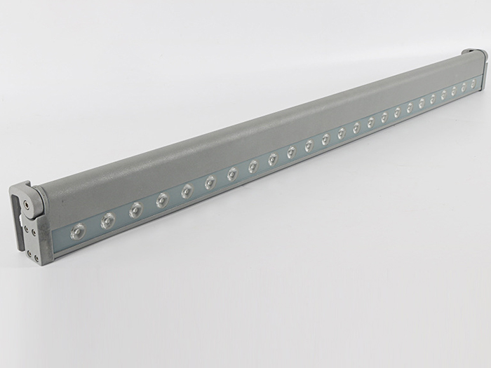 应用较多的LED洗墙灯基本上是选用1W大功率LED管(每个LED管会带有一个由PMMA制成的高光效透镜,其主要功用是二次分配LED管发出的光),呈单线排列(二线或多线排列的我将其归为LED投光灯),大多数LED洗墙灯的LED管都是共用一个散热器,其发光角度一般有窄(20度左右)、中(50度左右)、宽(120度左右)三种,大功率LED洗墙灯(窄角度)的最远的有效投射距离为5-20米,其常用功率大概有9W、12W、18W、24W、36W等几种功率形式,而它们的常用外形尺寸一般为300、500、600、900、1000、1200、1500mm等几种,可以按实际工程应用选择不同的长度和功率密度。